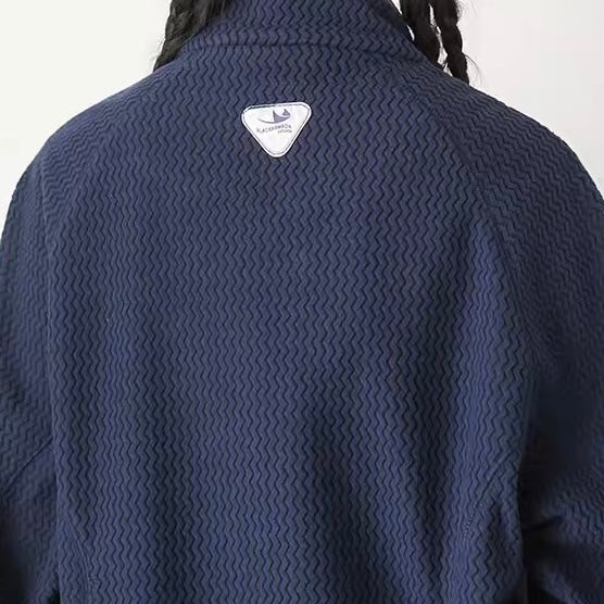 ゆったりとしたシルエットは動きやすさを重視し、レイヤリングスタイルとも相性抜群。季節の変わり目にも重宝する一着で、自然なこなれ感を演出します。