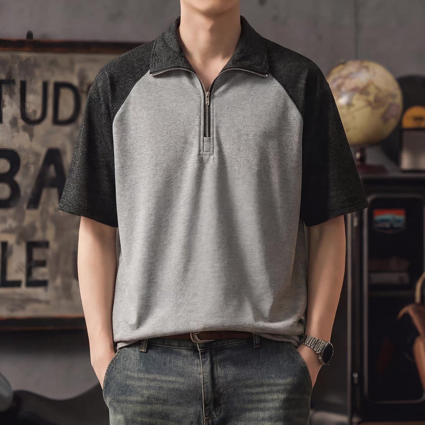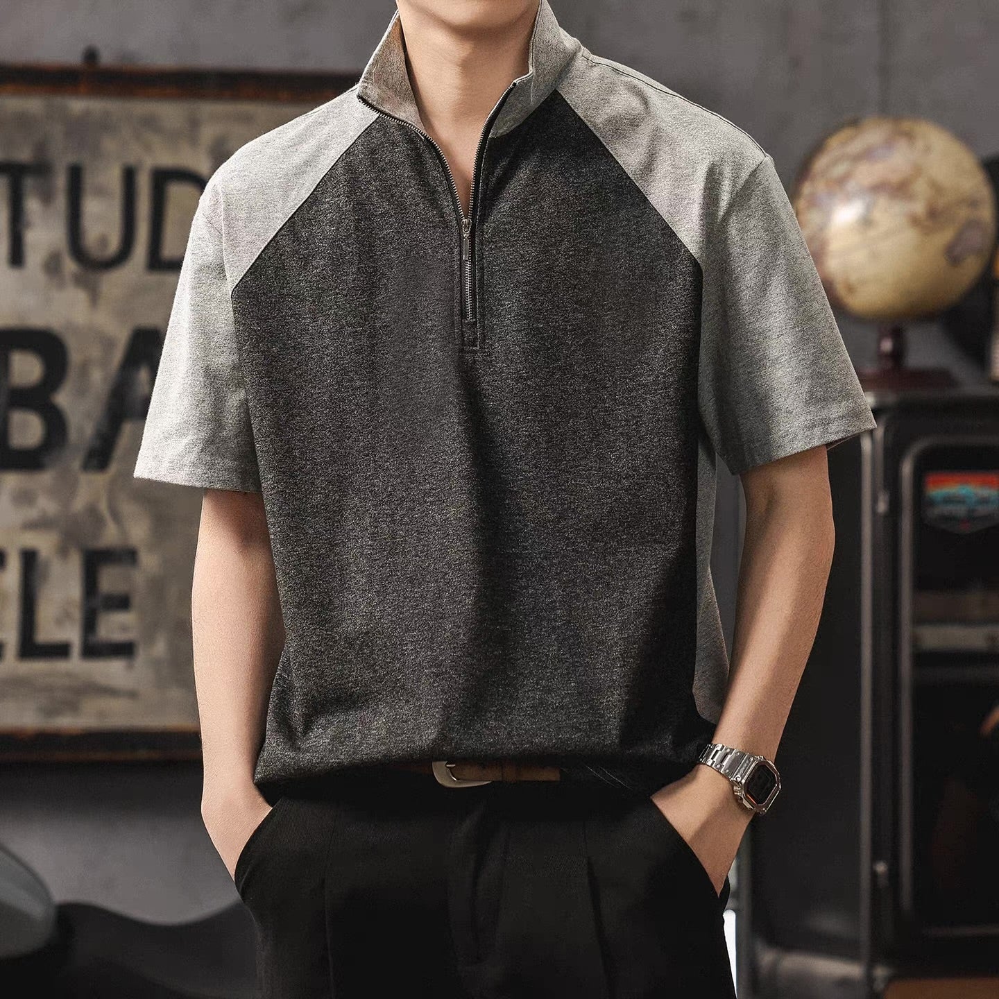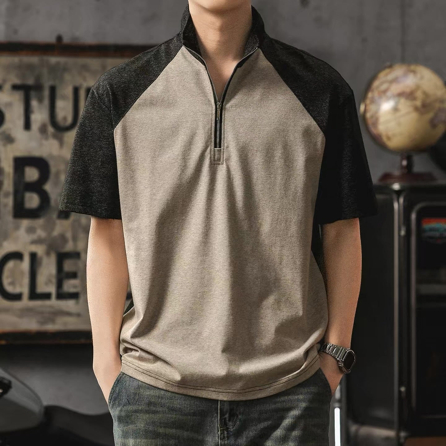 スタンドネック バイカラー Tシャツ(3Colors)260203