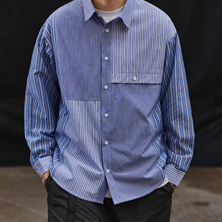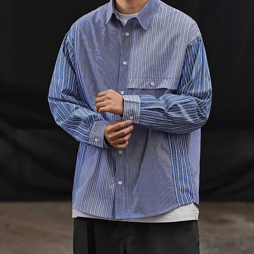 ストライプ クレイジーパターン 長袖シャツ(1Color)240124