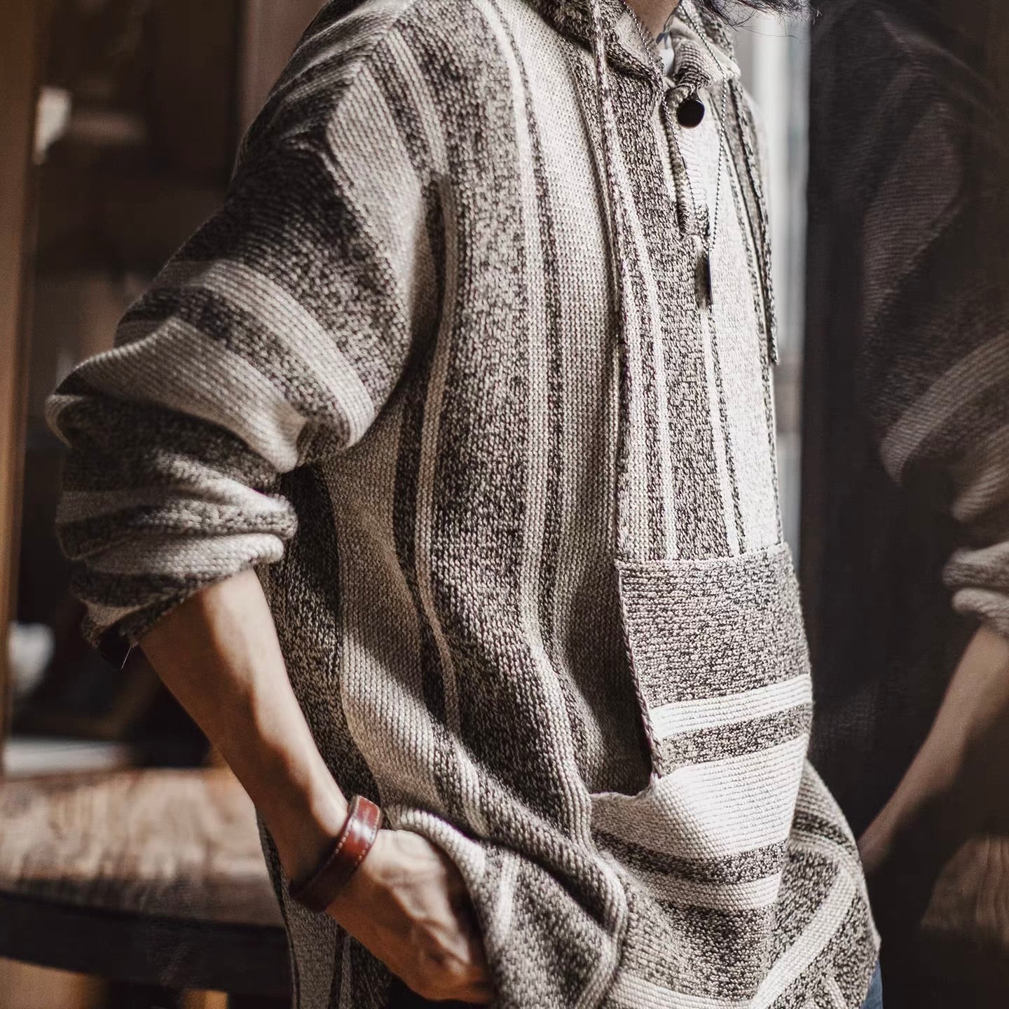 ストライプ フード付ニットプルオーバー(1Color)251092