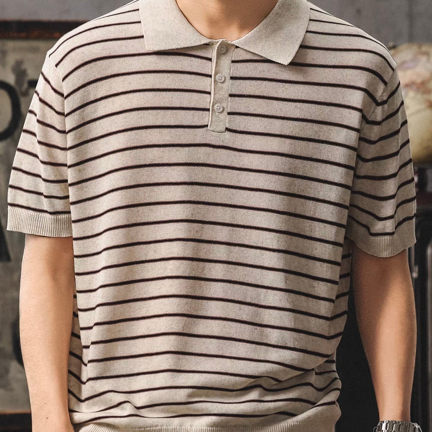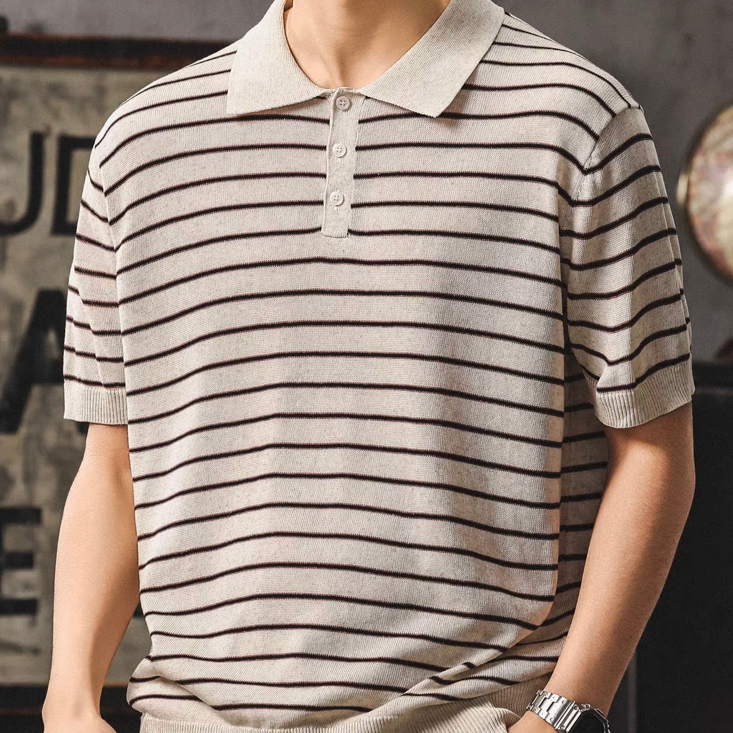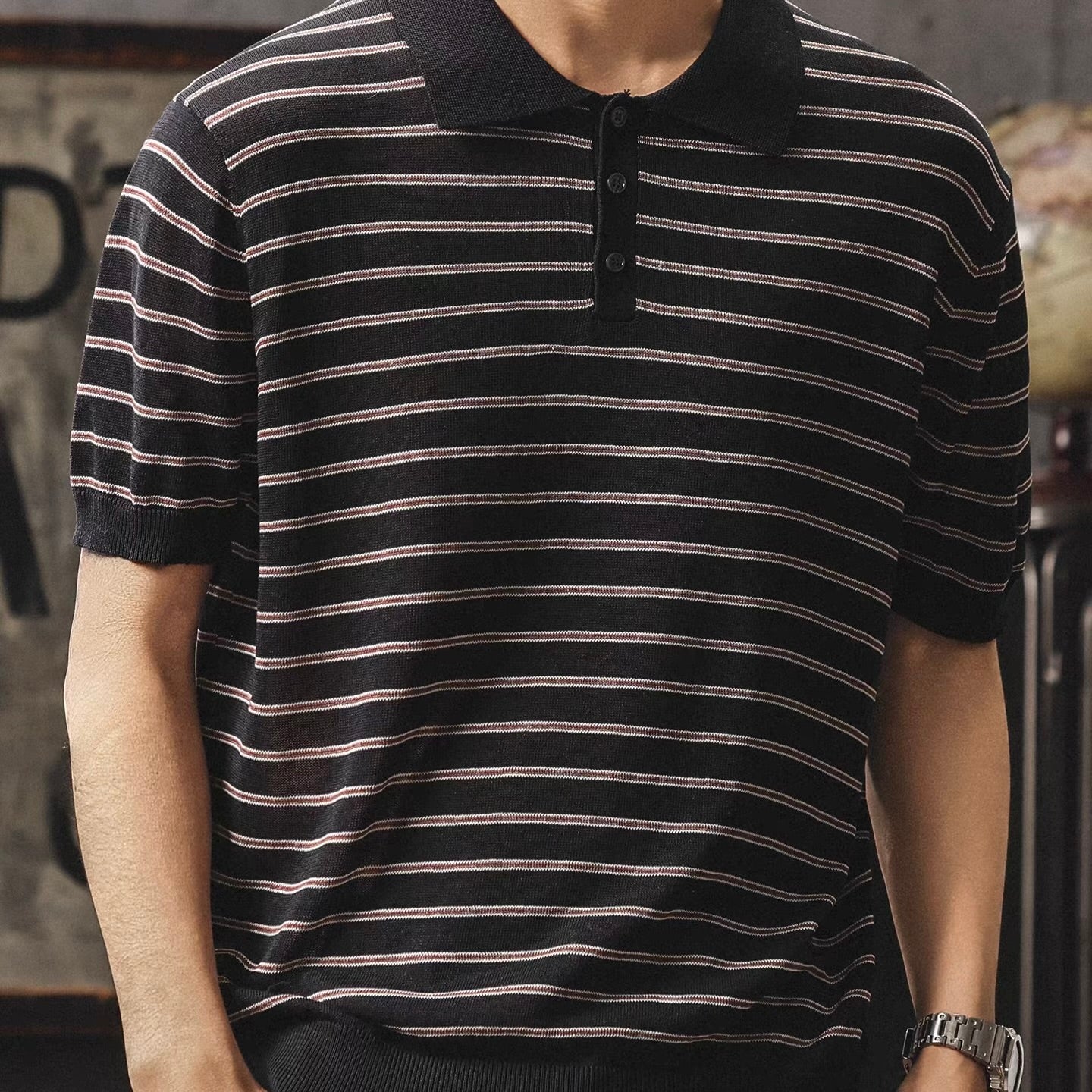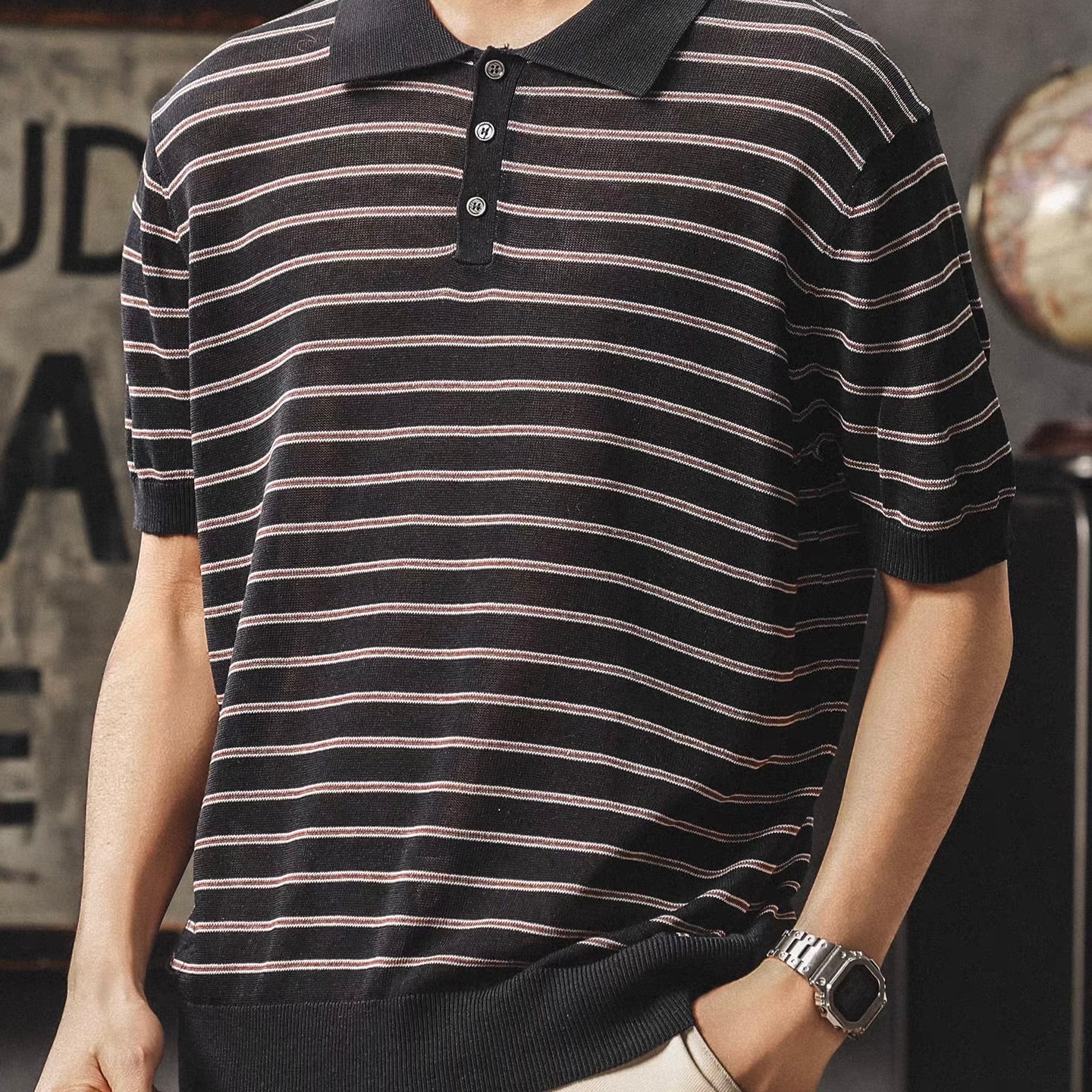 ボーダー 半袖ニットポロシャツ(2Colors)260252