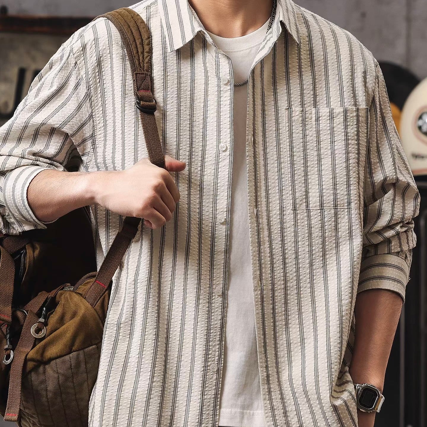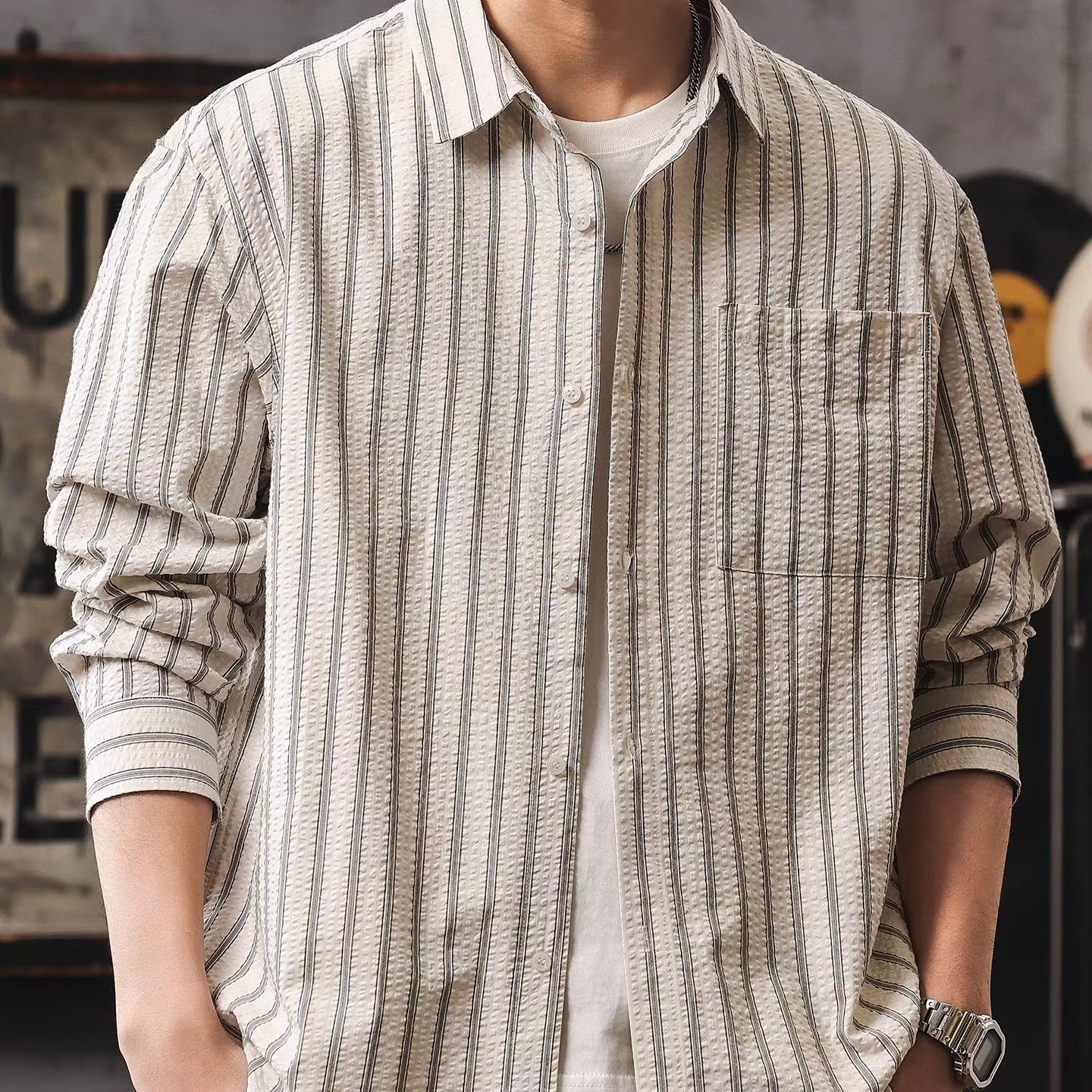 テクスチャー ストライプ 長袖シャツ(2Colors)260119