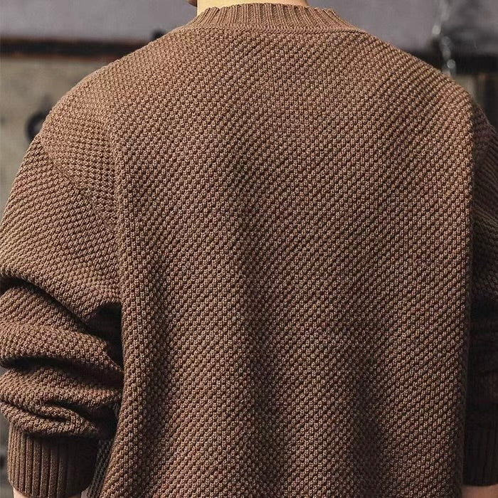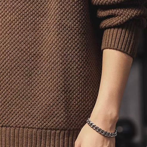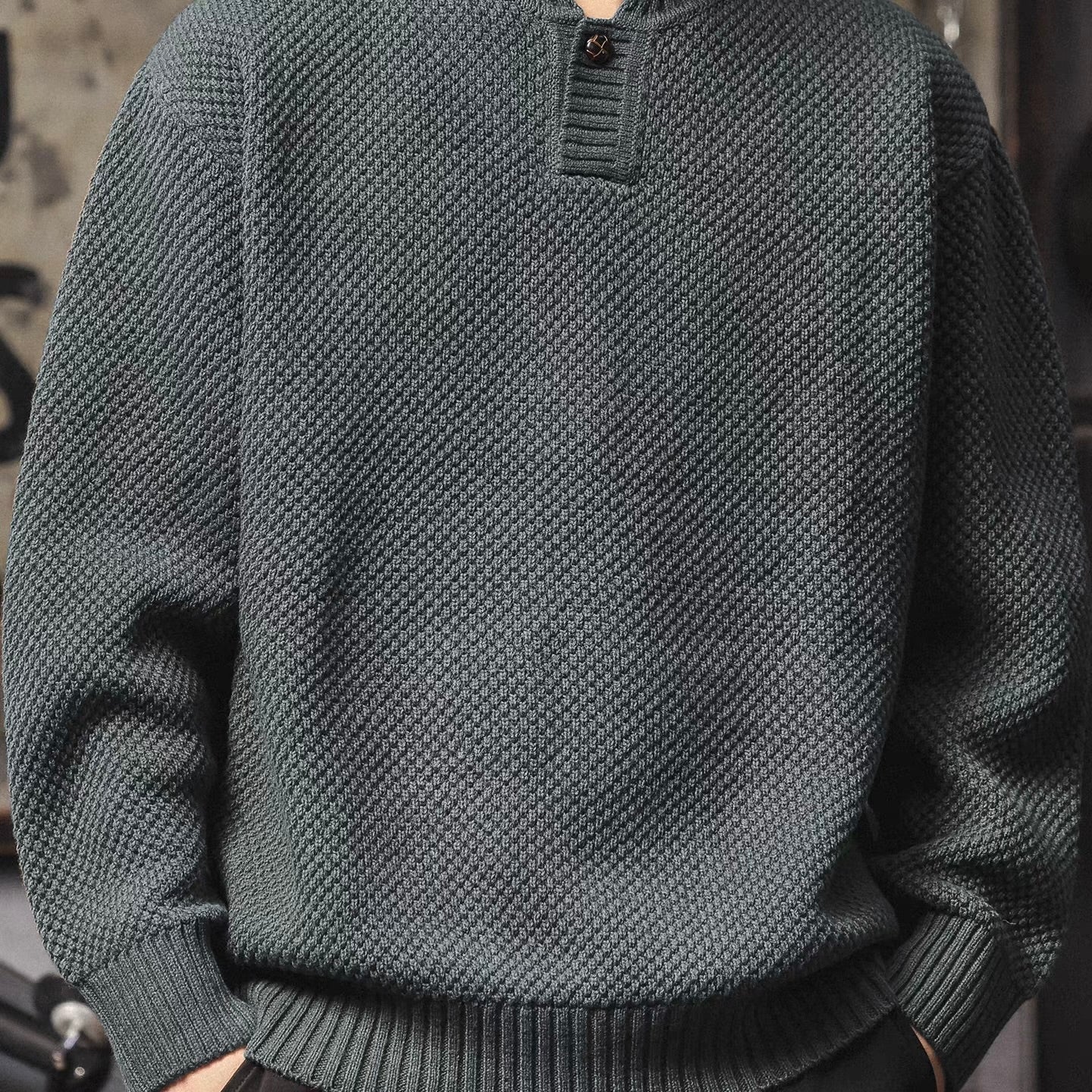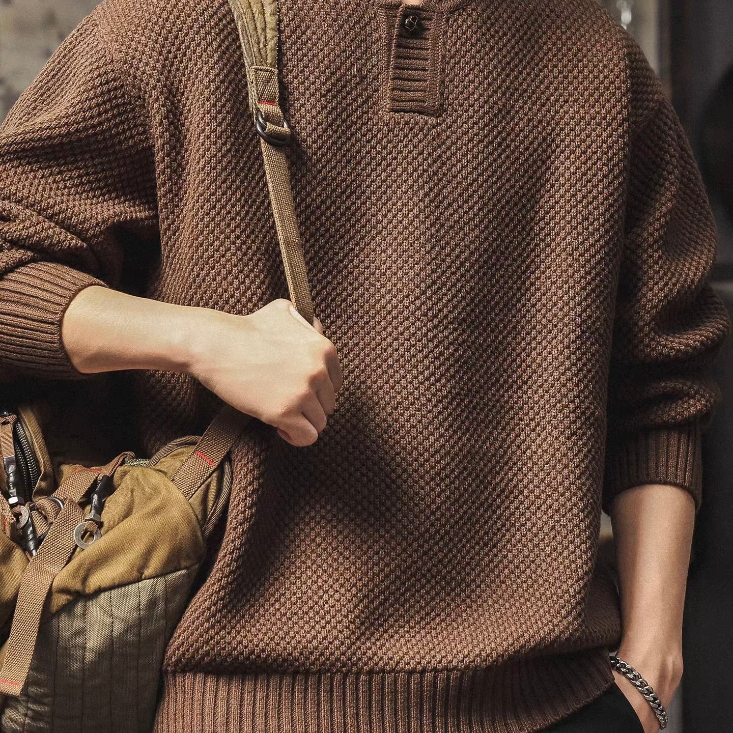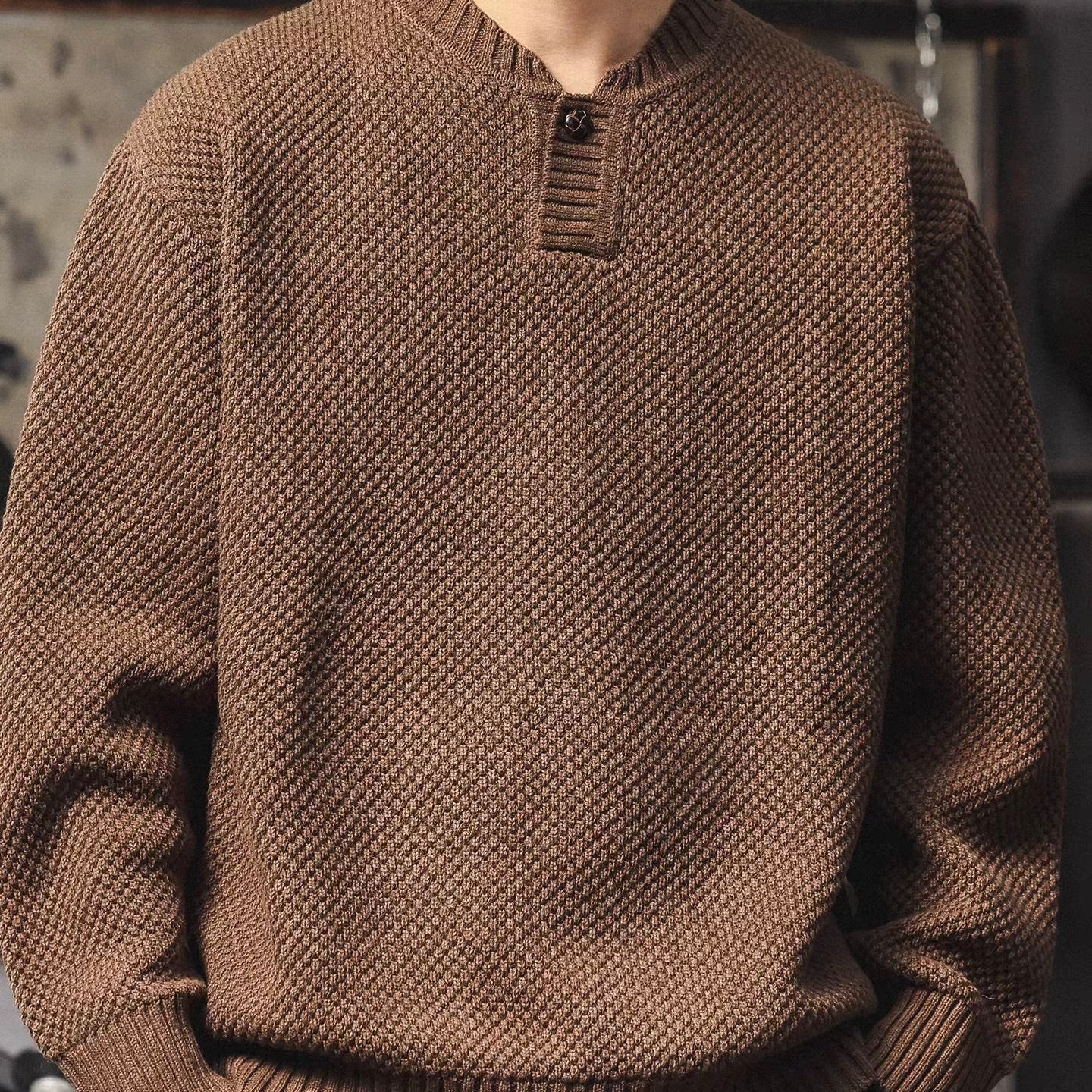 心地よい暖かさとスタイルを兼ね備えた厚手のヘンリーネックセーターです。