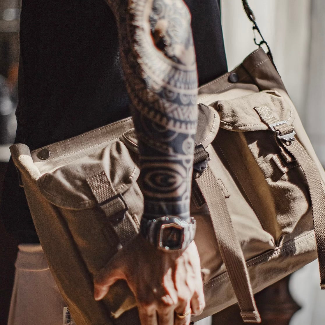 ある日、通勤電車で、肩ベルトを何度も直す人を見かけました。あの小さなストレスを、毎日くり返させたくない——それが、このバッグづくりの出発点です。