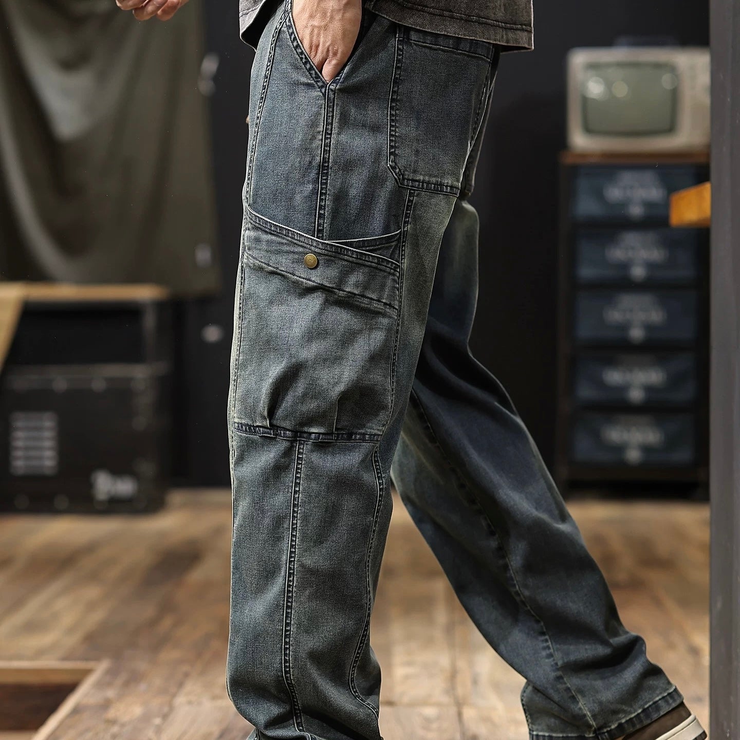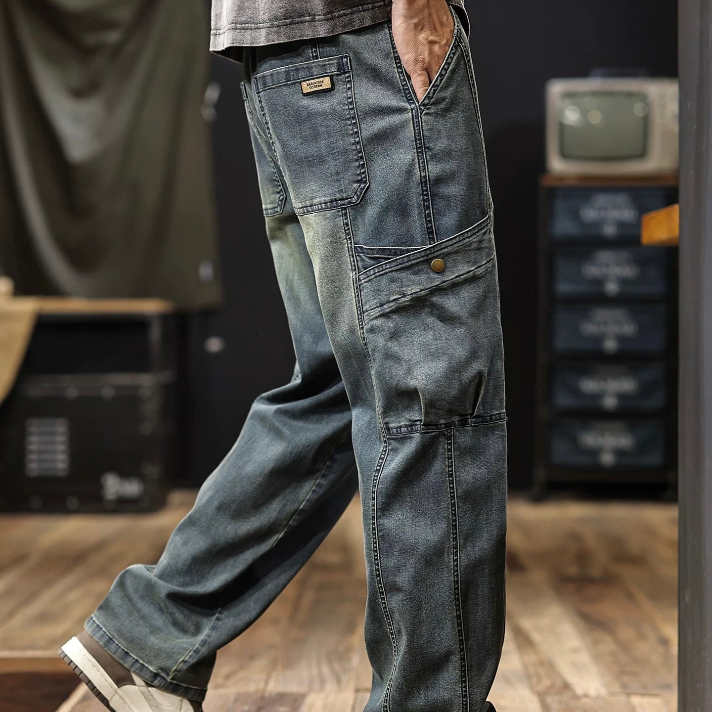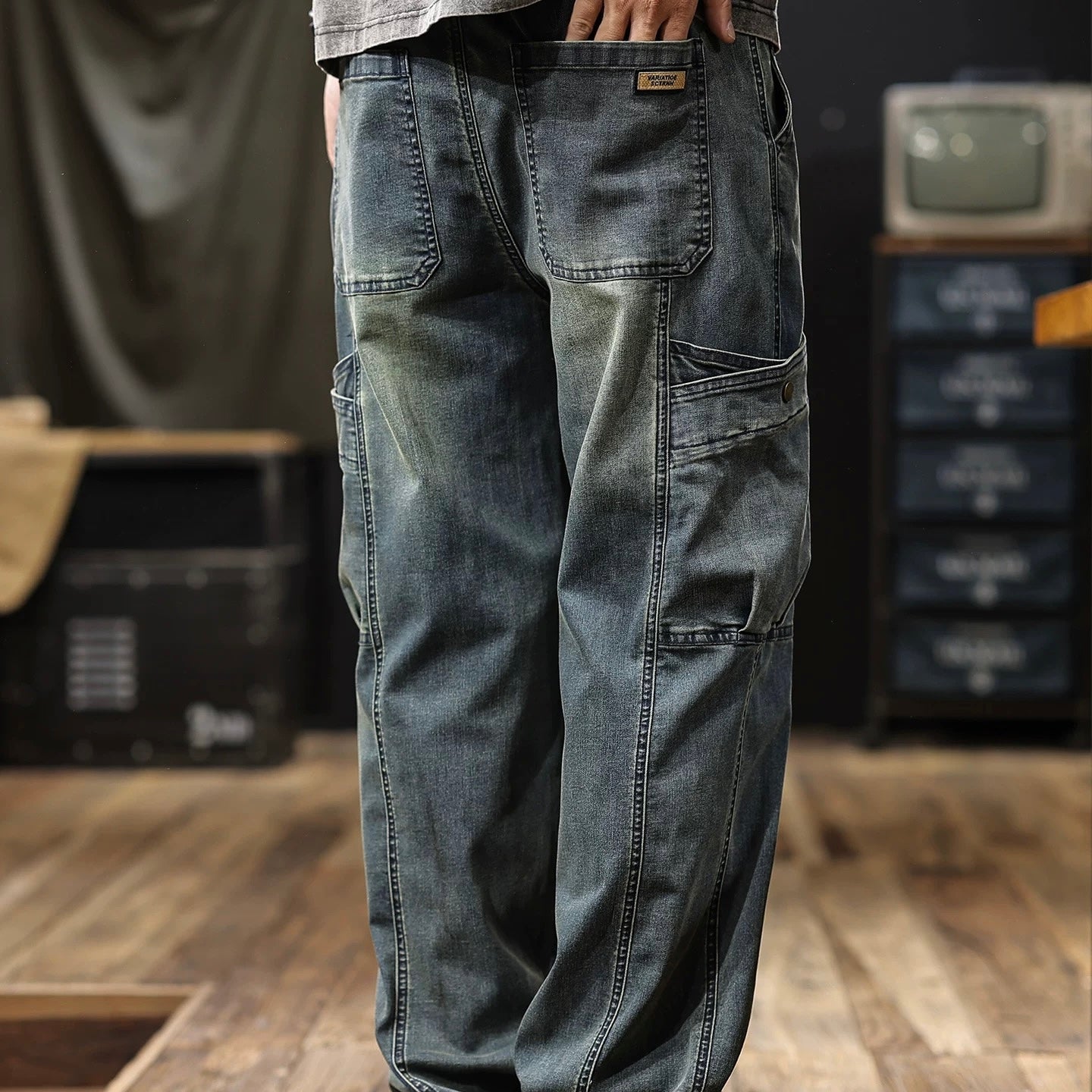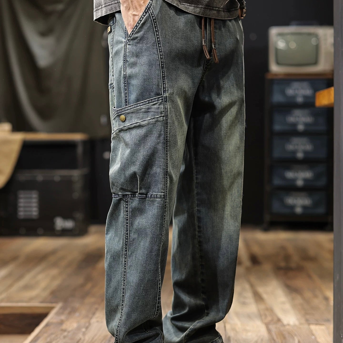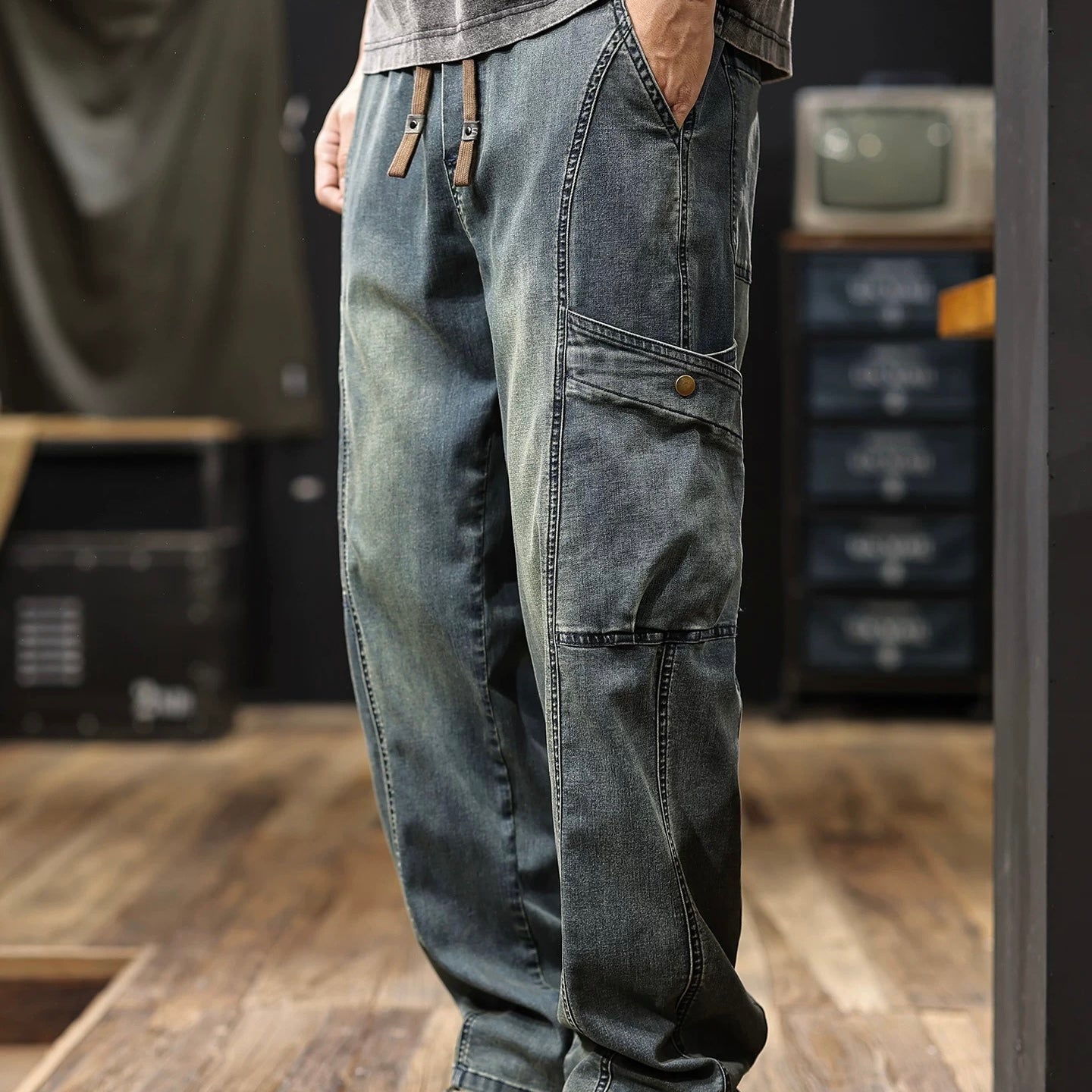 マルチポケット付 ウォッシュドデニム イージーパンツ(1Color)250634