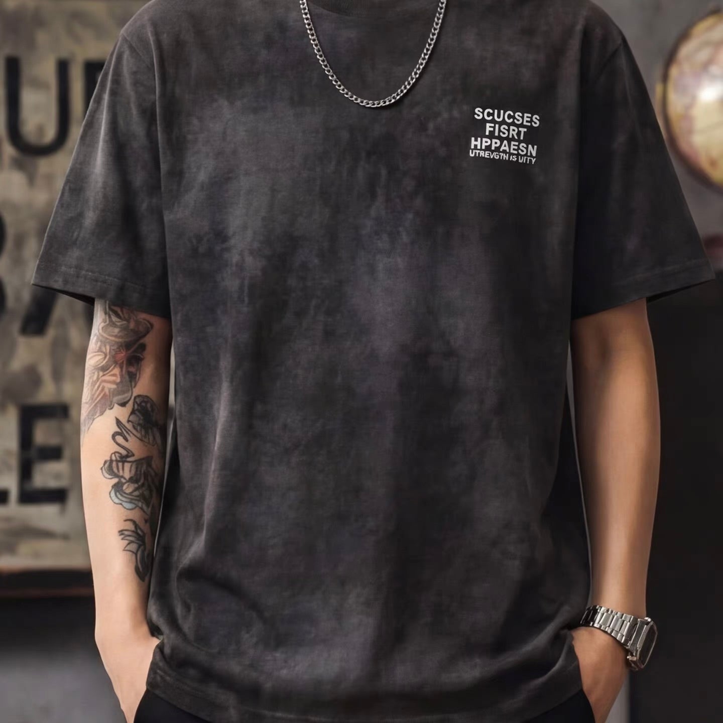 ウォッシュ加工 レタープリントTシャツ(2Colors)260205