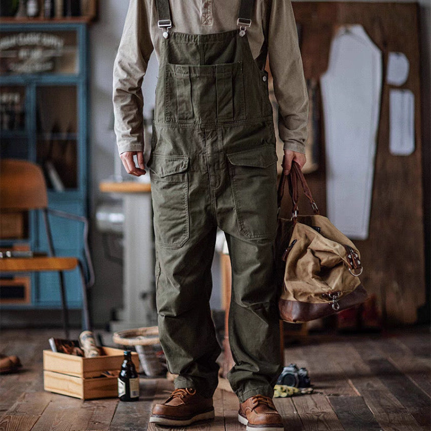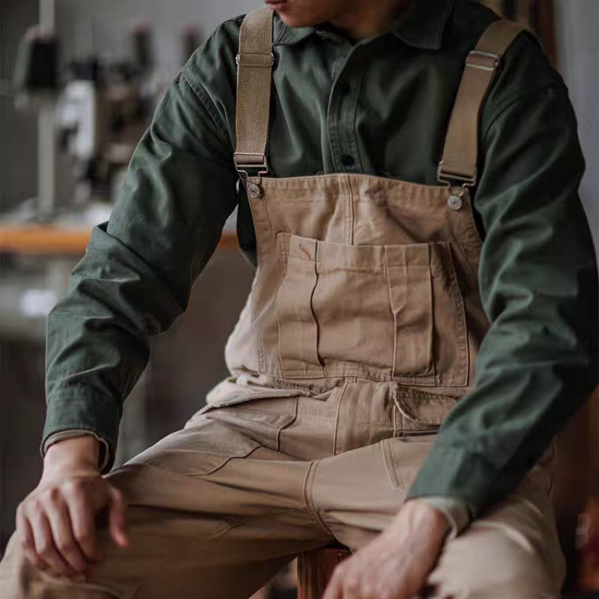 このオーバーオールは、ウォッシュ加工とマルチポケットが特徴です。ウォッシュ加工により、ユニークなデニムの表情が楽しめます。また、マルチポケット付きで便利にお使いいただけます。2色のカラーからお選びいただけます。