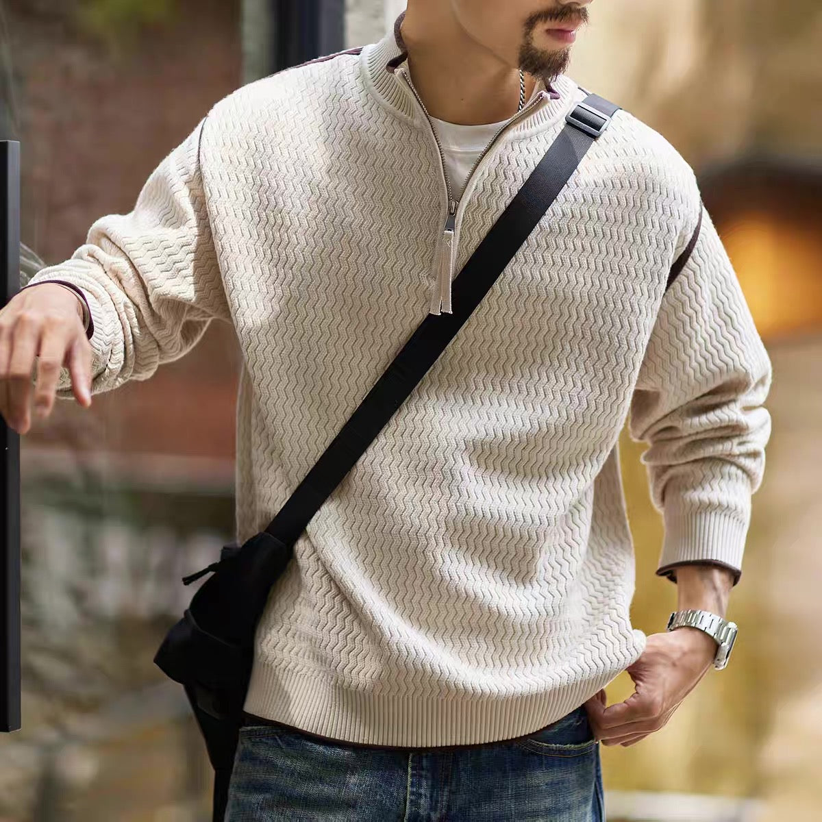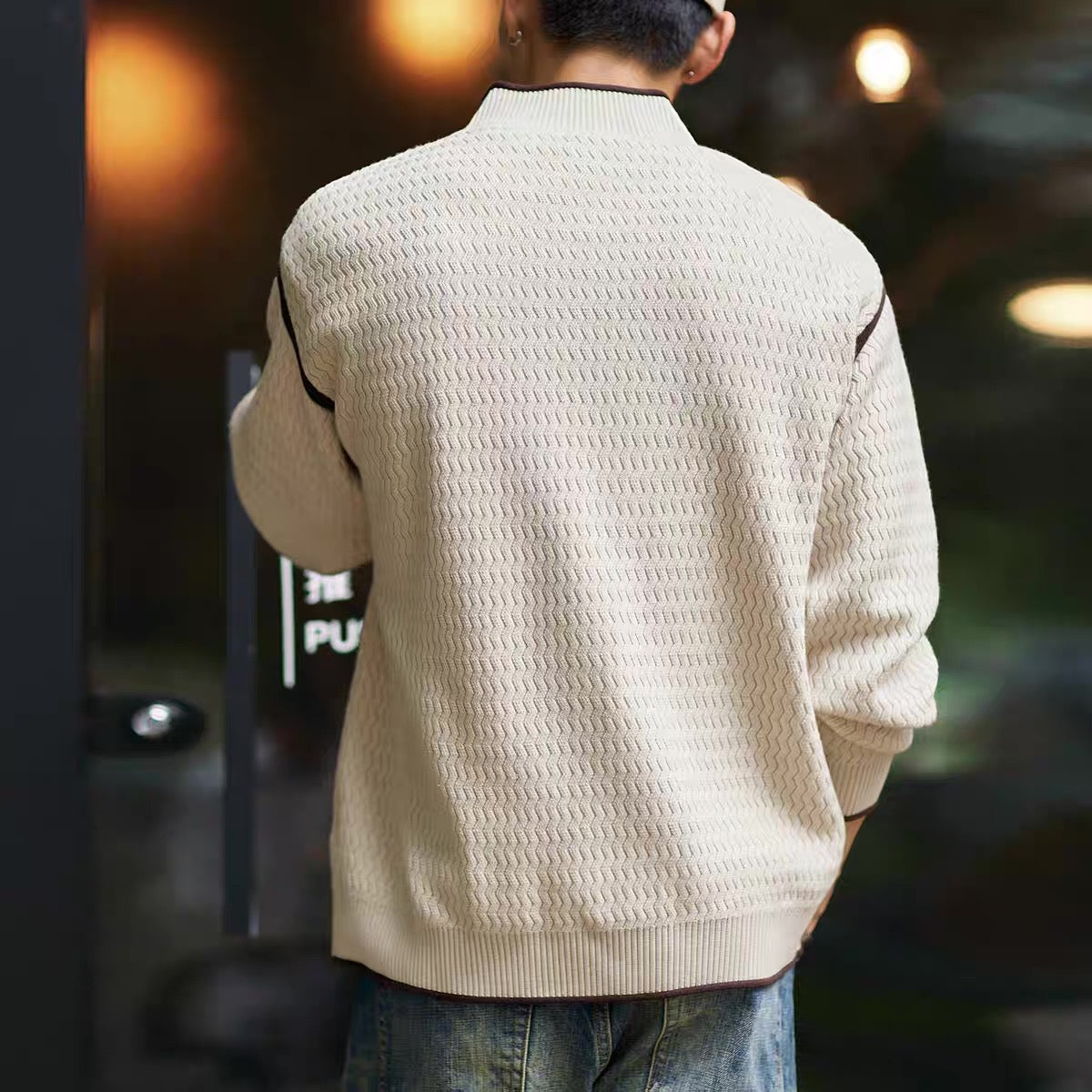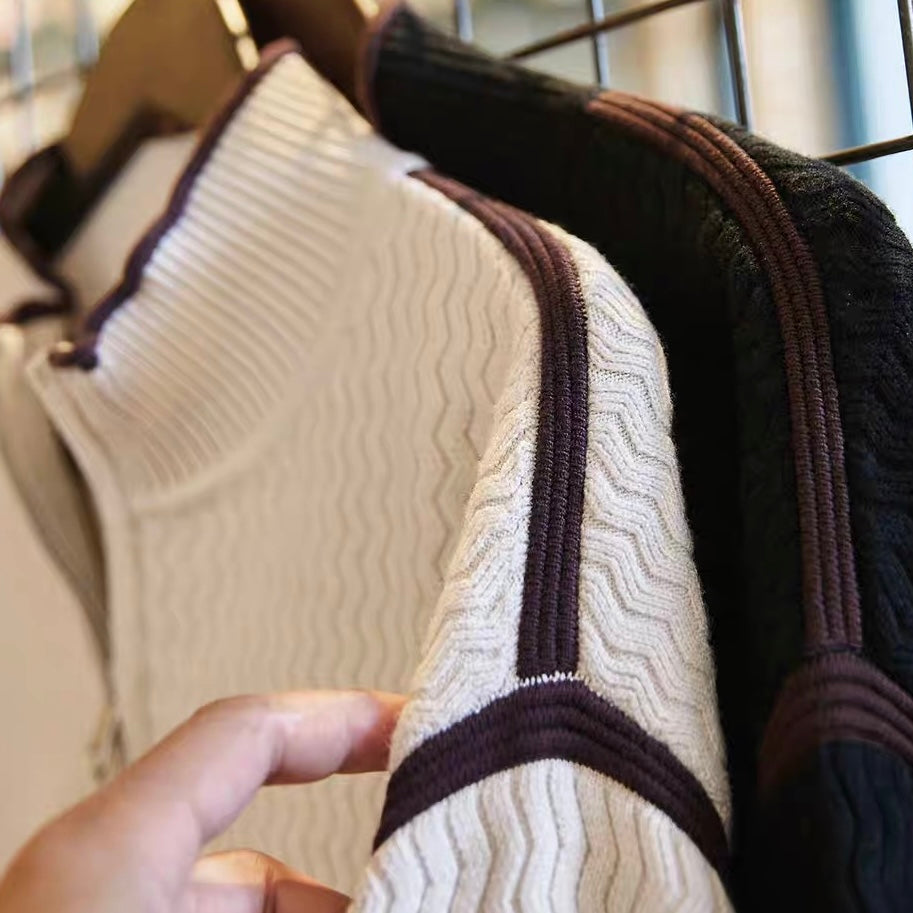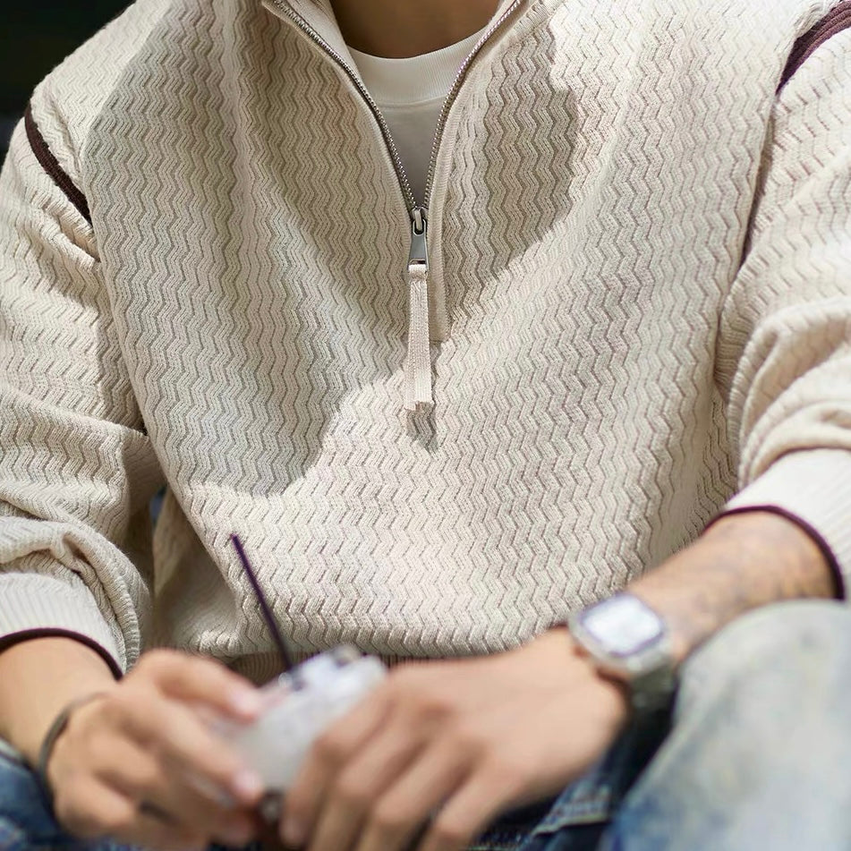 ウェーブデザイン ハーフジップ セーター(2Colors)250883