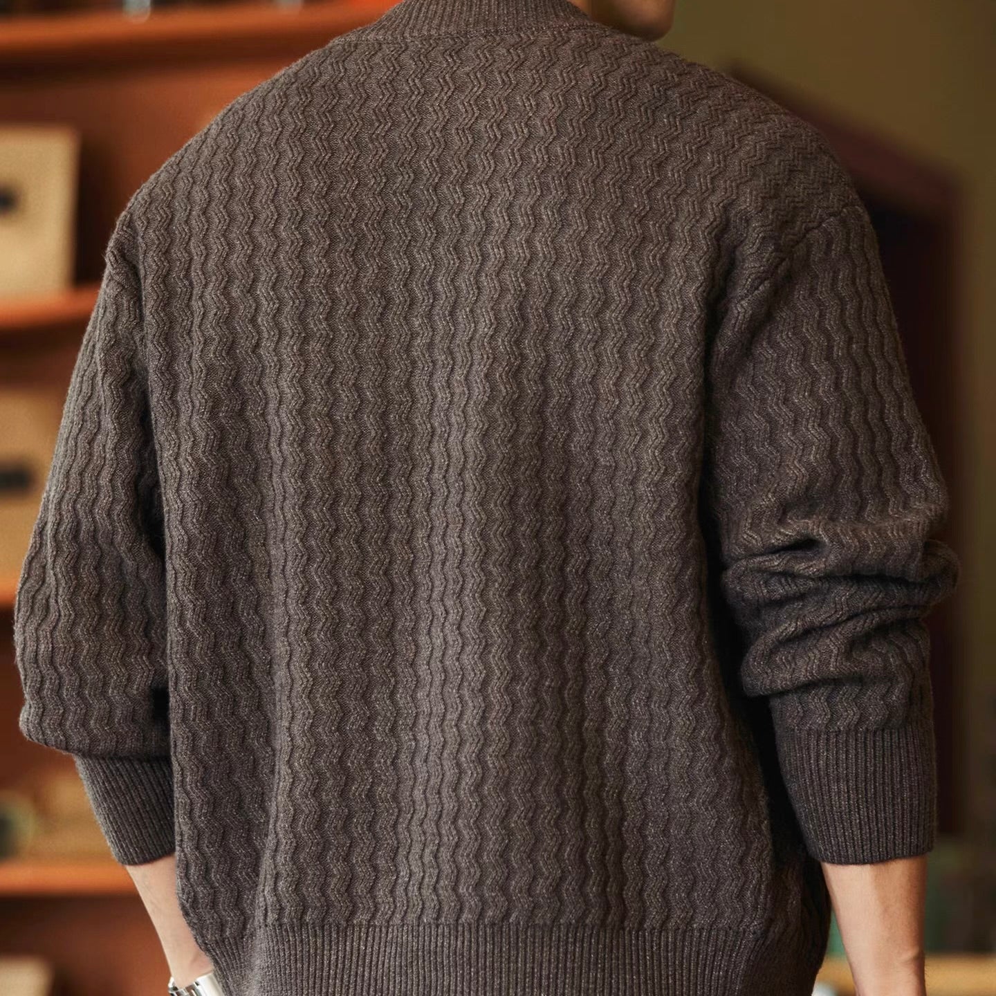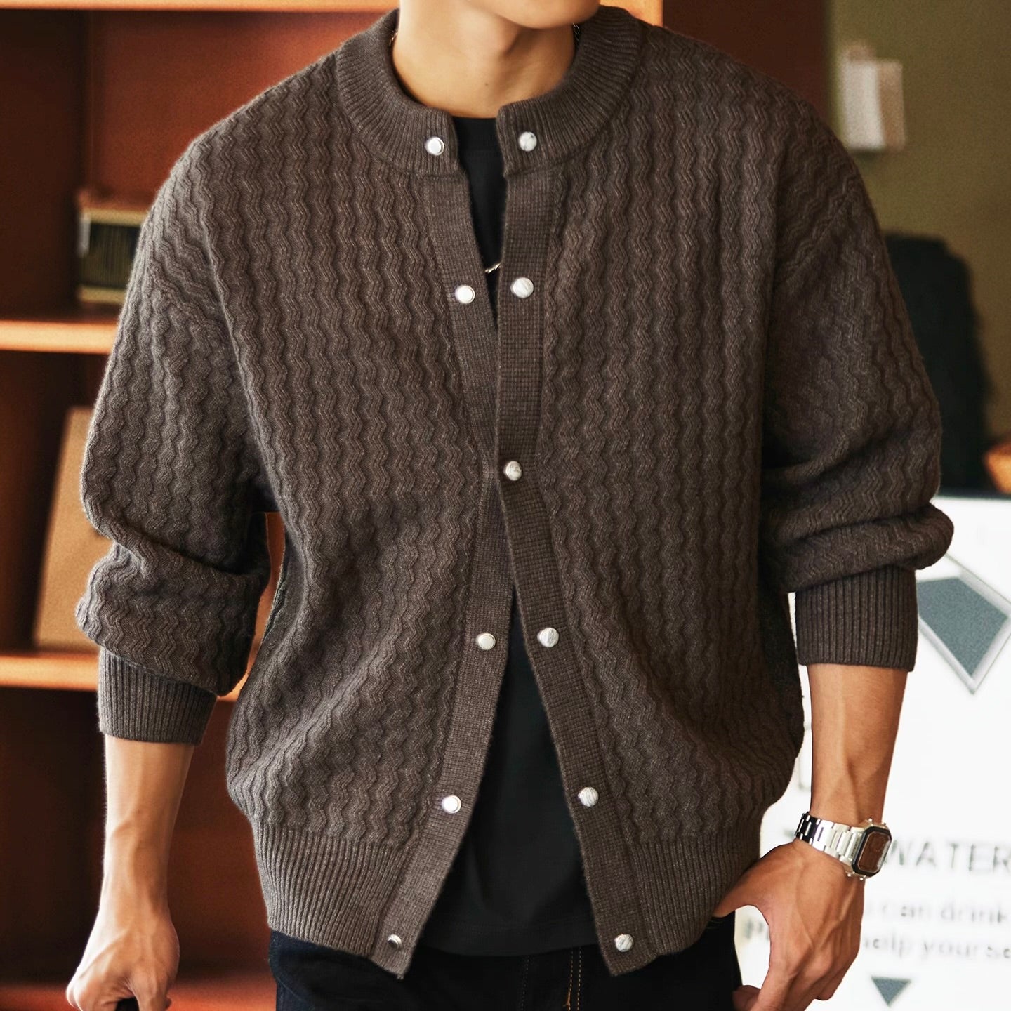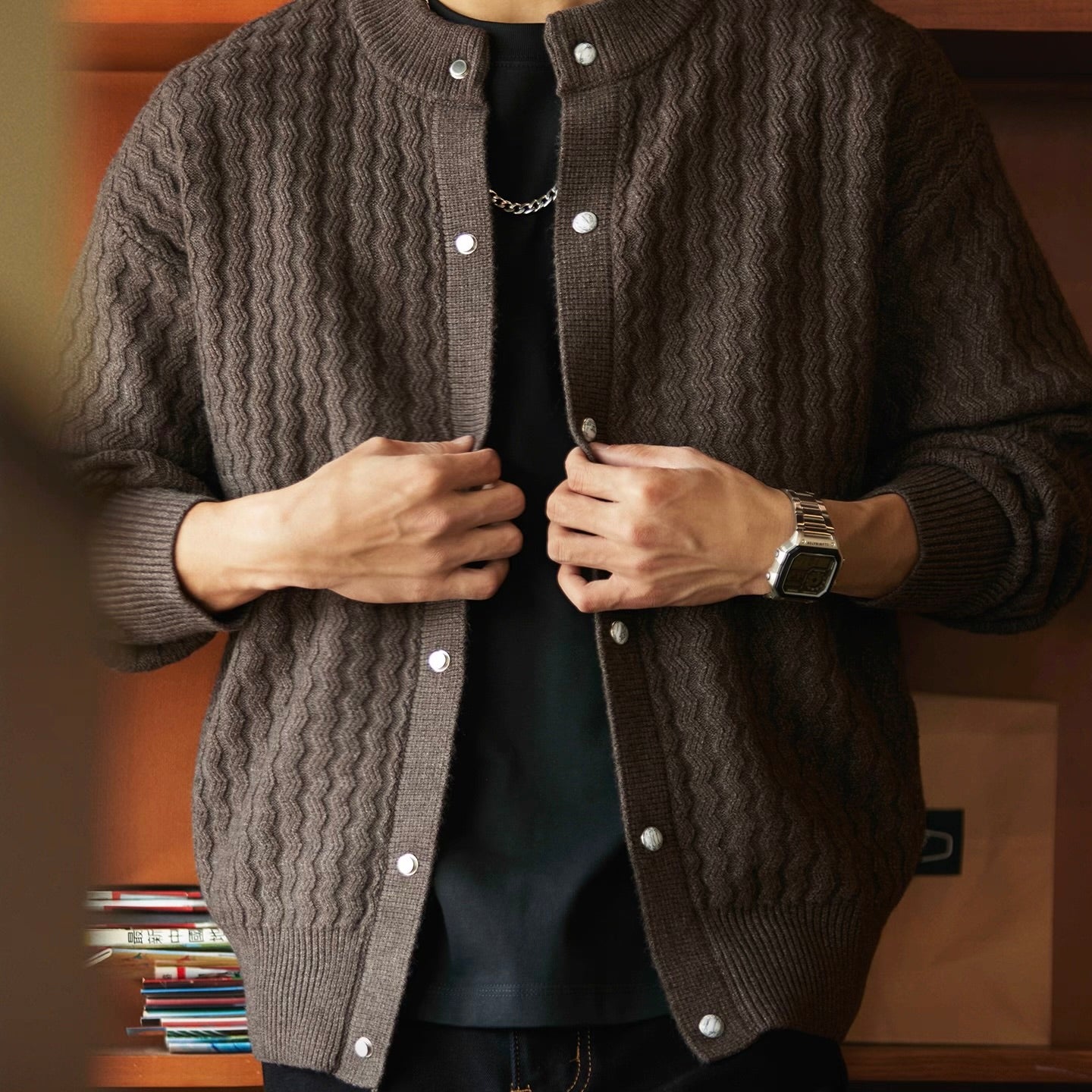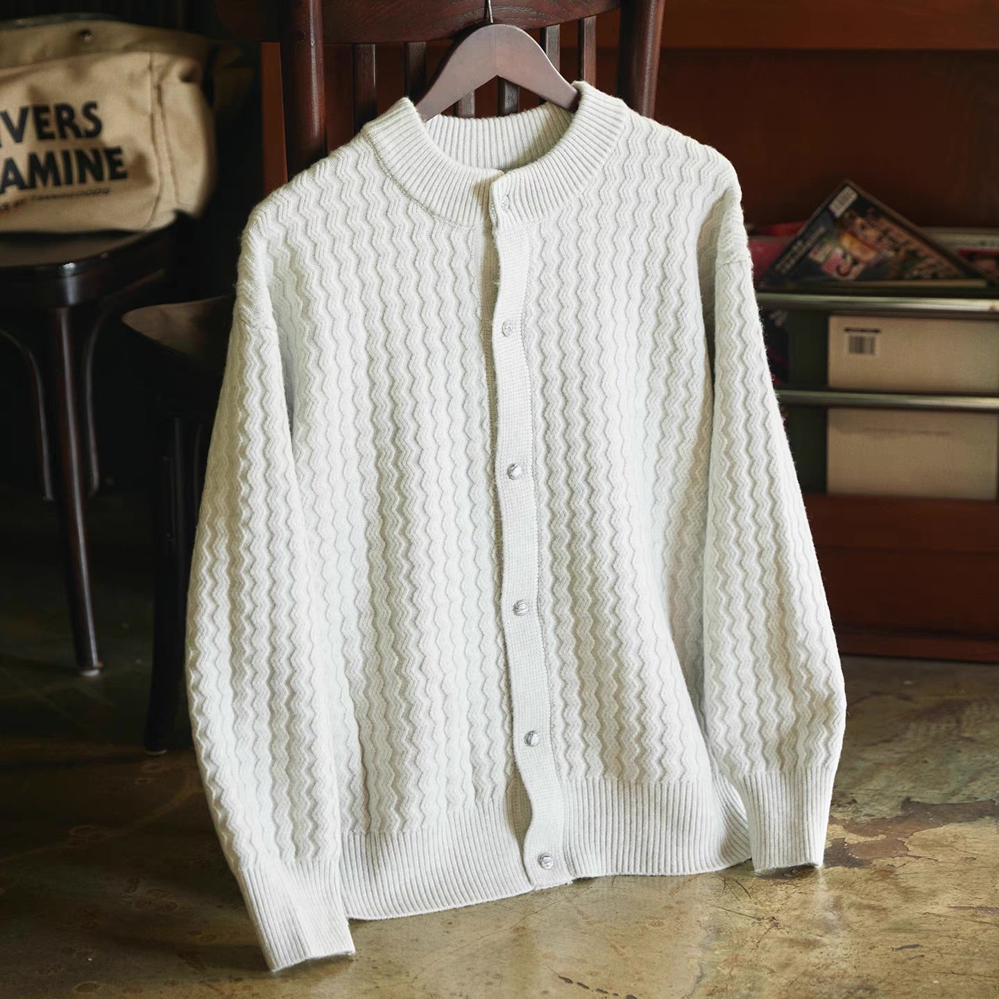 ウェーブデザイン ラウンドネック カーディガン(3Colors)250977
